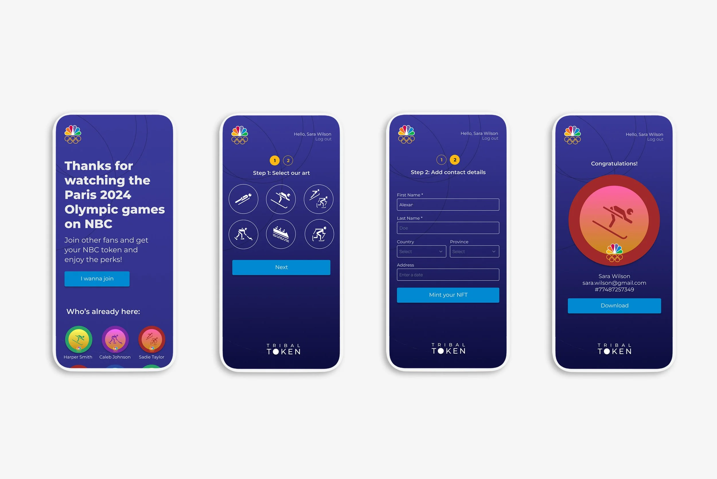 In 2023 I worked alongside with project manager and engineers at Tribal Scale to design a prototype of a Proof of Attendance Protocol (POAP) app. POAP refers to NFTs that prove a person has attended a certain event. The case was created around an fictional client, NBC.
